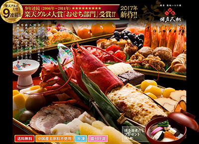 博多久松のおせちは8年間連続で、楽天グルメ大賞「おせち部門」を受賞しています。楽天グルメ大賞は、ジャンルごとの「ベスト1」の商品だけに与えられる賞です。ということは、「楽天で8年もの間、最も人気が高いおせち」といえます。
