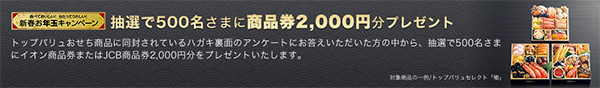 対象のおせちを購入された方の中から抽選で500名に、今ならプレゼントがもらえるキャンペーンを行っています。