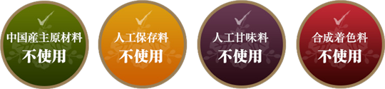さらに、おせちを食べていただく方の健康を考えて、人工保存料、合成着色料、人工甘味料、そして中国産の原料はまったく使っていません。